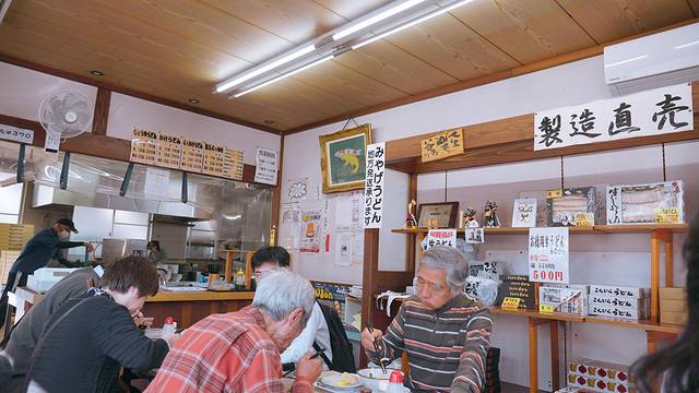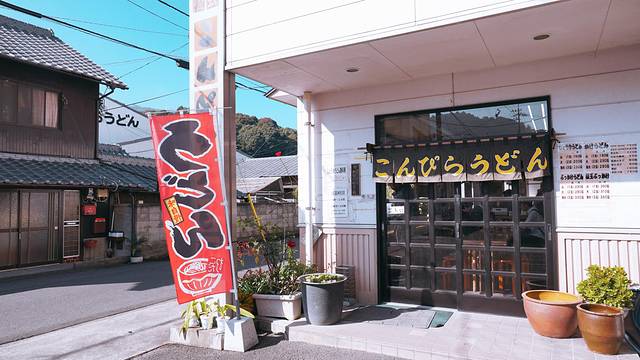 从高松到琴平差不多一个半小时的车程。到达的时候正值午餐时间。打卡的第一站就是小丸子去过的乌冬面店!这种很local的店最大的问题就是点单了。天哪,墙上的菜单看不懂,怎么点单也不知道。在一边围观了其他人半天,好像摸到了些门道。选餐是半自助的,先去窗口自取想要的浇头,然后告诉婆婆要哪种面就好了。自然又是鸡同鸭讲的时刻,机智的我们指指其他客人的碗,婆婆立马get要同款。至于浇头,我自认为拿了一大块炸猪排,结果发现是一大块炸豆腐。想想也是,毕竟小丸子是“贫穷”的一家子啊。味道其实很一般,但这不就是吃个气氛么,好玩~