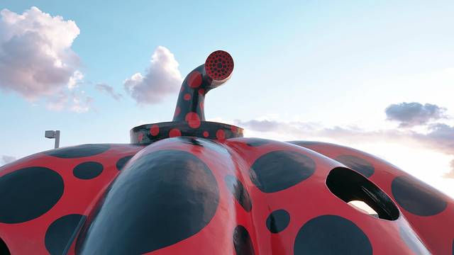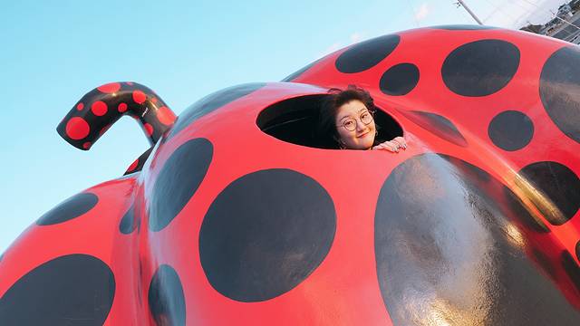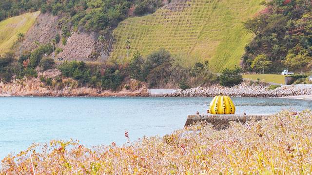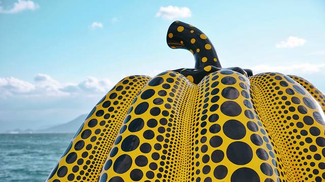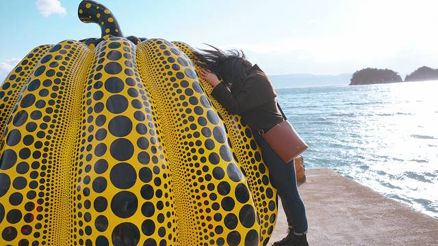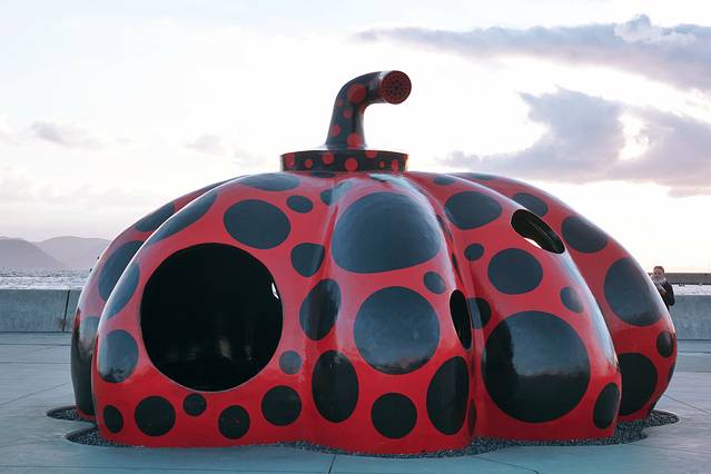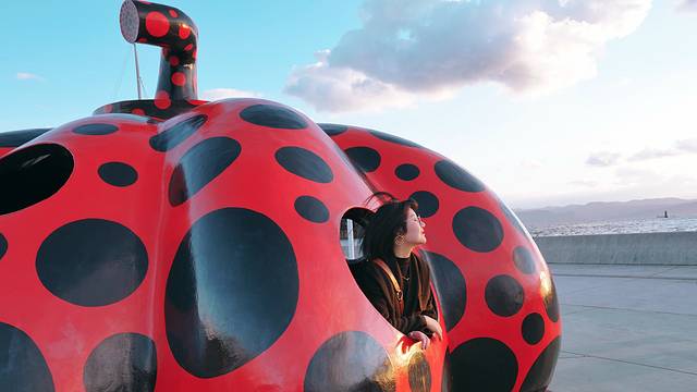 濑户内海是草间弥生的波点南瓜。红南瓜,黄南瓜。