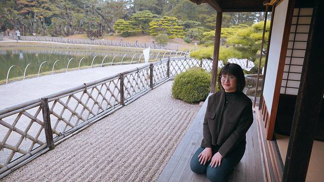 栗林公园里有个叫“掬月亭“的茶室还挺值得打卡的,因为这里拥有最佳的观湖视野。公园里著名的游船的项目其实就是一直在你的视线范围内划来划去。所以不想做船的话,直接来茶室玩耍,安静又隐蔽。
