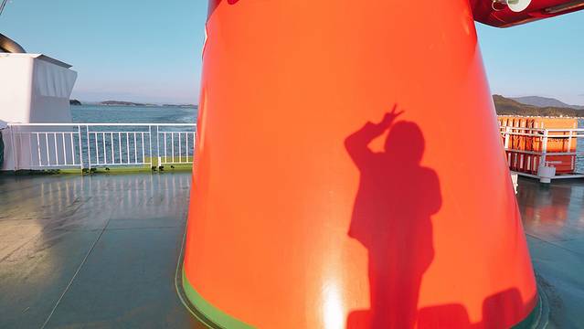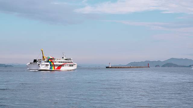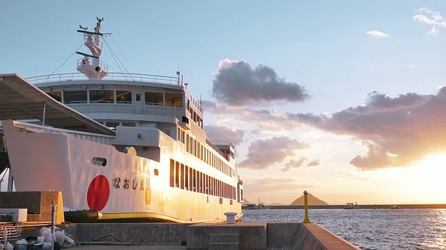 解决了箱子的问题,感觉连空气闻着都是甜的!非常建议坐慢船往返高松和小豆岛,倒不是因为将近便宜了一般的价格,主要是船大,非常稳。而且船里有各种式样的座位可以挑,沙发位,皮椅,甚至还有榻榻米。船上还有自助饮料机,无聊了还可以去甲板上看看海,如果跟我们一样是傍晚的航次,那么还有一场海上落日等着你。