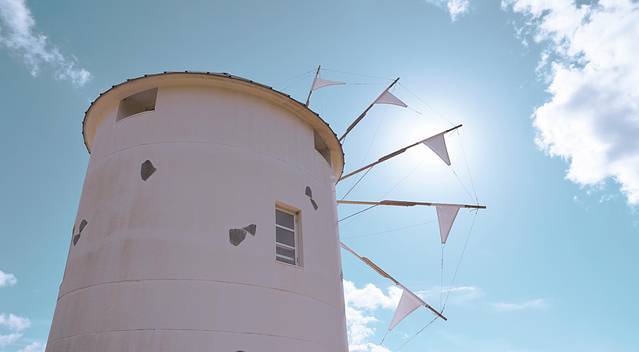 其实除了大风车,从游客中心到大风车这段路上也挺有意思的。整个橄榄园有点希腊风,白色房子,蓝屋顶~这股小清新还挺适合拍照的。
