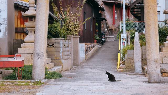 男木岛的另一个称呼就可爱多了,叫“猫岛”。因为岛上有很多喵喵。严格地说,这些喵喵都是流浪猫,不过岛上的居民经常会投食它们,所以猫猫们还是挺圆润的。猫猫们几乎都是剪耳的,据说以前岛上猫比人还多,多到影响岛民生活,所以猫猫们就被绝育了。