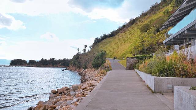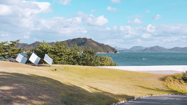 其实每座岛都避免不了上坡下坡的,而且直岛的面积可比昨天的男/女木岛大多了。所以想好好逛岛,一定要借到电动自行车!这一脚电动的助力可不是吹,风一般的自由!不论淡旺季都建议提前预约,不然没车真的很杯具。到达直岛宫浦港后,火速提车,毫不留恋路边的风景,一溜上坡直奔美术馆。