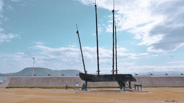 其实过了艺术祭,岛上的大多数艺术装置都会被拆除,只剩下一些不好拆的可能会留下。沿着海边走,很快发现了一架钢琴和帆船的结合体,名叫“20世纪的回想”。显然是一种不好理解的…艺术。既然如此,那就来一场海边狂风中的的“肖邦”狂舞曲吧。