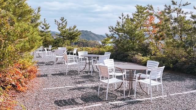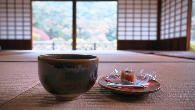 茶室的门票包含一杯抹茶和一个和果子。安静的跪在榻榻米上,坐拥一线美景。关键是知道这里的人并不多,只有为数不多的当地人会来茶室,旅行体感极佳。如果穿着和服的话,那在这里拍照简直绝了呀。