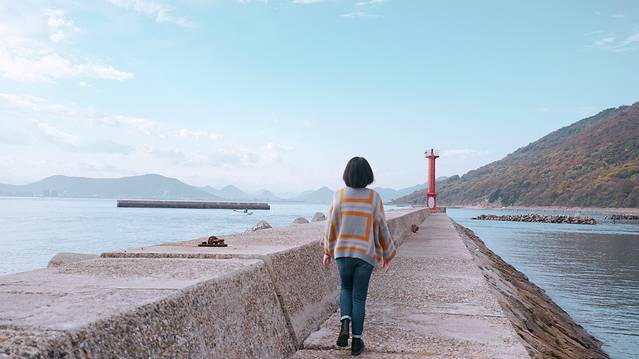 小豆岛的第一天特别闲散,上岛安顿完差不多已经中午了。错过了去橄榄园和寒霞溪的巴士时间,那就在酒店附近逛逛呗。在酒店附近发现一条长长的堤坝。日剧“为了N”还在这里取过景呢。