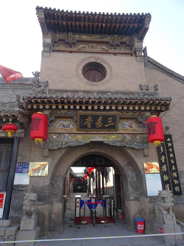 曹家大院又称三多堂,整体结构是篆书的“寿”字形。主体“三多堂”,取多子、多福、多寿之意,由三座四层的堂楼组成,楼顶还分别建有亭台。