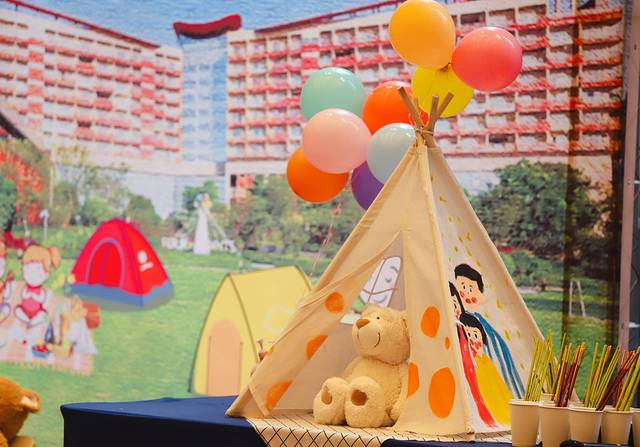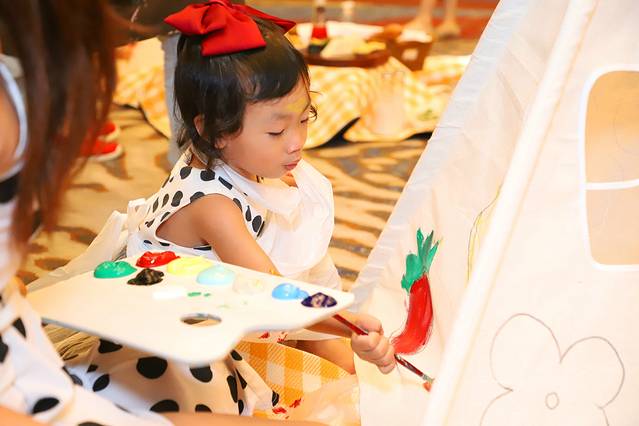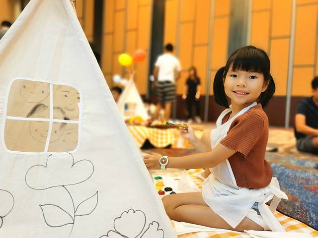 天气原因活动设在宽敞明亮的宴会厅内,纯白的小帐篷、可爱的公仔草坪艺术节活动在一片温馨中拉开了帷幕。