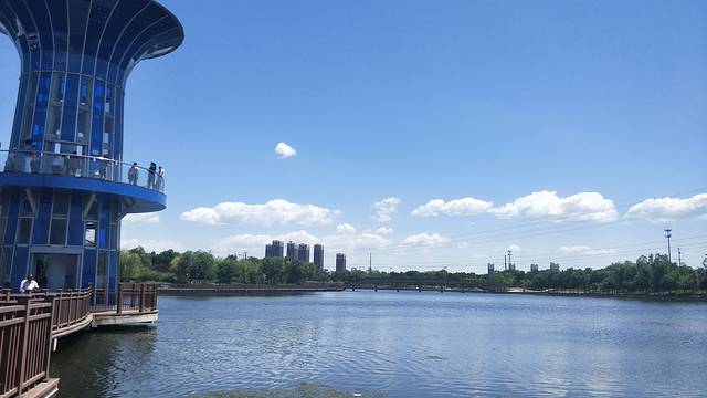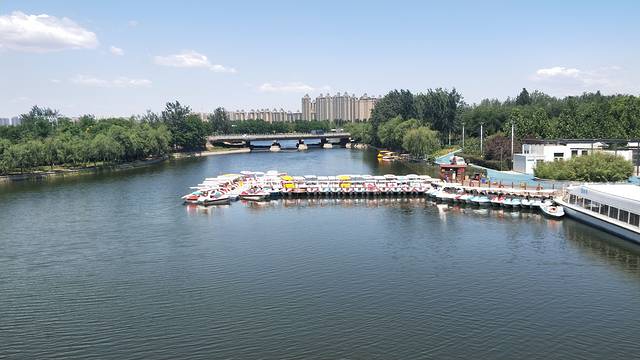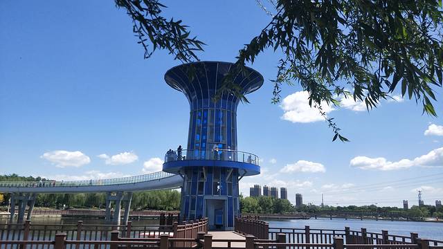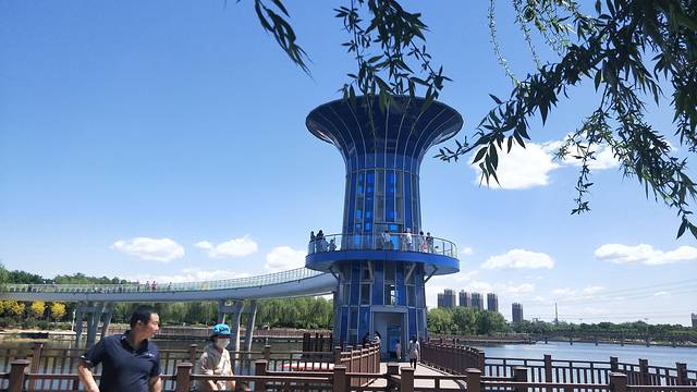 💗推荐理由:环城水系的泊水公园是石家庄网红打卡景点,特别火,很多人来次打卡,站在玻璃桥可以俯视美景以及宽阔的泊水湖面,当夜景来临,灯光亮起,蓝色的水晶塔与金色的灯光交相呼应,衬托了出了各自恩美。与爱人牵手散步于此也是很浪漫的。