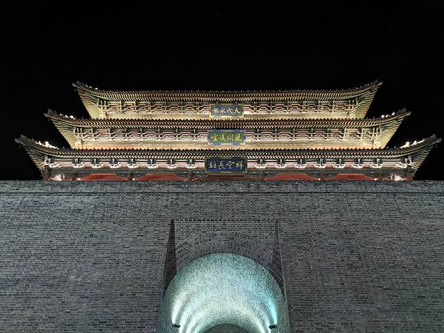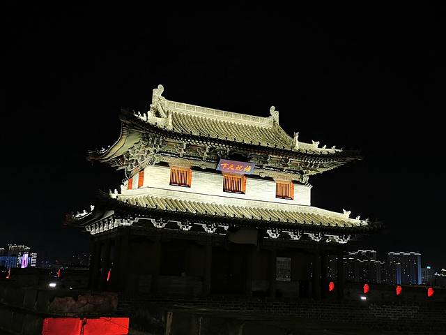 吃过龙聚祥的烧麦走几步就能上城墙了。一定要晚上上城墙,有灯光的加持,远处的高楼被夜幕隐去,能让人更好地欣赏城墙的美。