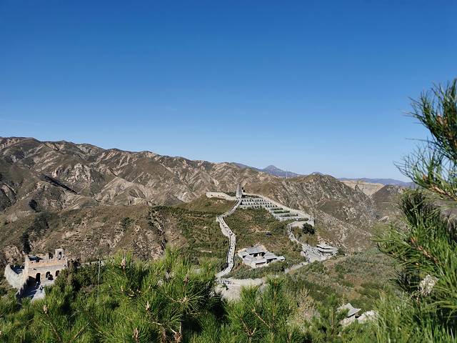 爬到长城的高处看雁门关