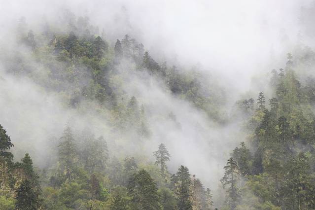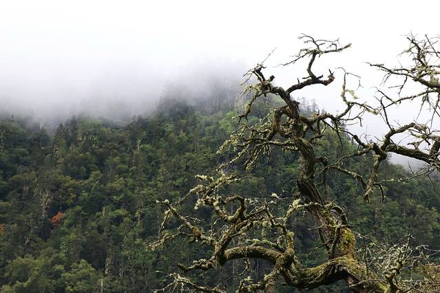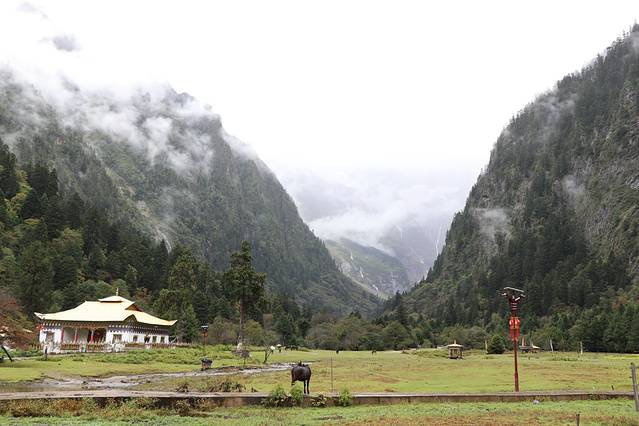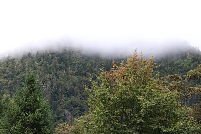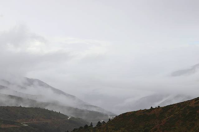 越往飞来寺前行天气越阴霾,原来九月才是这里的雨季,想看梅里雪山真容全靠运气,看来希望渺茫。
