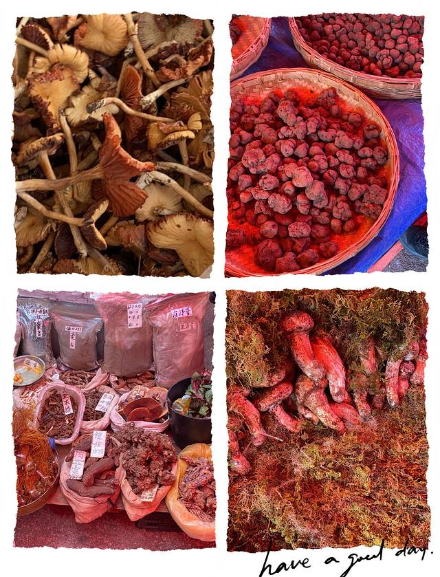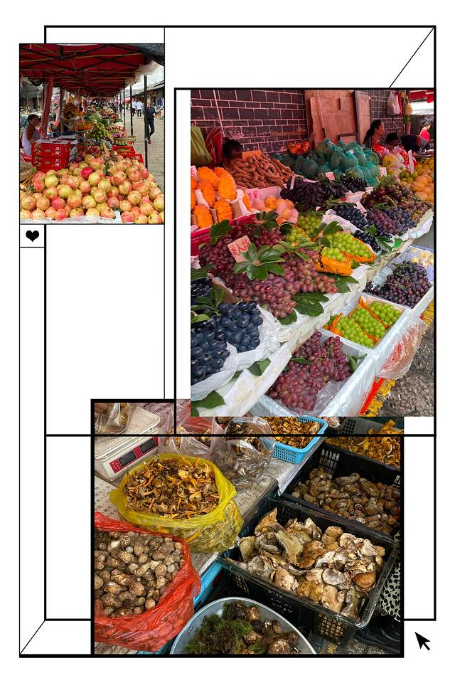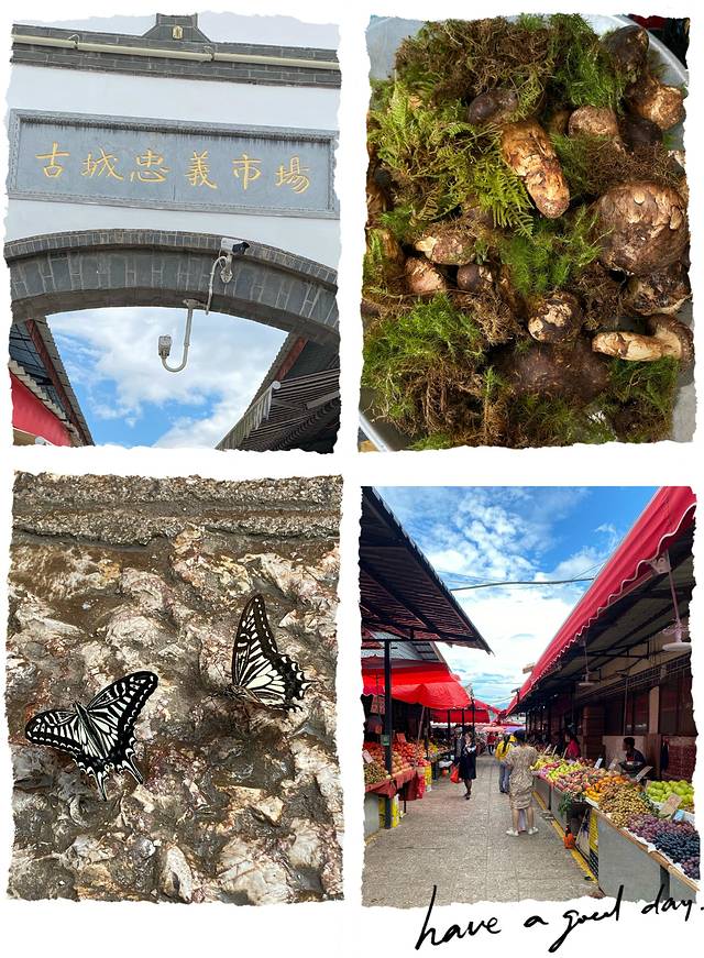 古城的西南方向出口是忠义市场,在这里可以看到云南各种菌子,也能买到新鲜水果,价格和北京差不多。