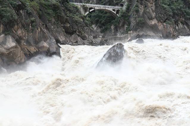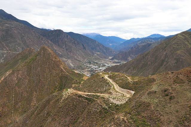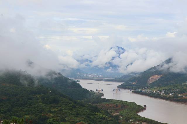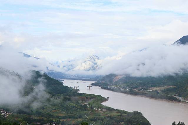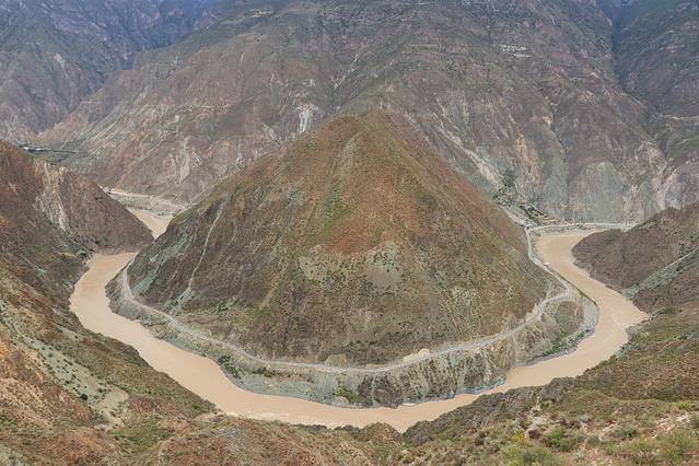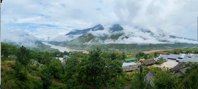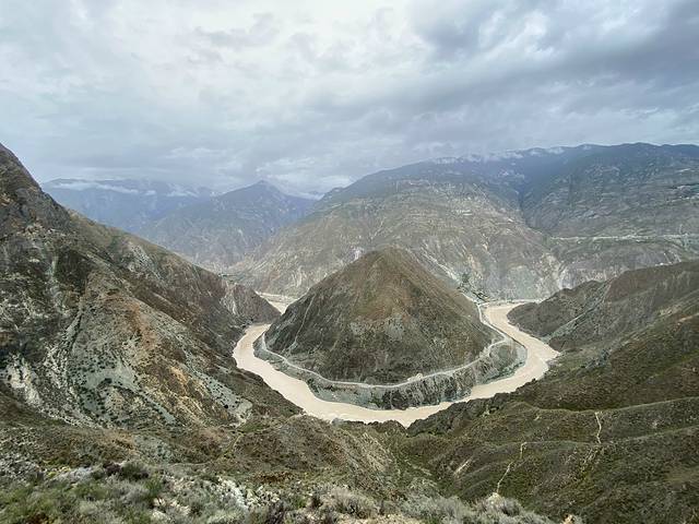 顺着金沙江一路而上,行过连绵的山脉和香格里拉镇,到达月亮湾。
