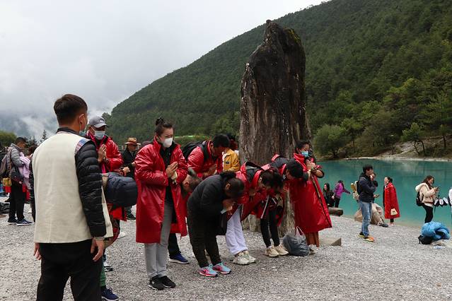 从古城大水车出来前行到公交车站,有去往玉龙雪山的专线,15元/位约1.5小时到达。蓝月谷本身是没有门票的,会收几种景区车的费用。