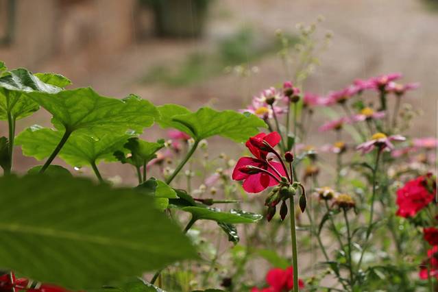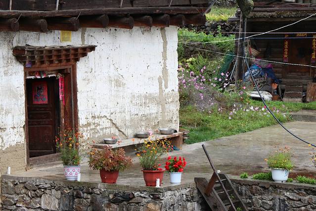 从峡谷徒步下山走快点大约4小时,坐车过来在谷边的村民家等徒步下山的队友。村民家种了不少东西,盆栽里开了一朵十分艳丽的花。