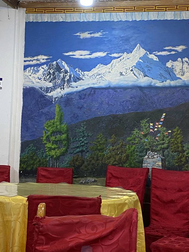中午闲来无事,沿村路而下,路旁都是餐馆和咖啡馆,感觉上雨崩没有多少村民,都是外乡人过来做生意的。想去香港人开的俊平喝杯奶茶,赶上老板盘库没有营业,便去了对面的诗和远方,服务态度很好。