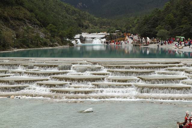 蓝月谷坐落在玉龙雪山脚下,因湖水湛蓝、山谷呈月牙状而得名,素有“小九寨”之称,主要由玉液湖、镜潭湖、蓝月湖和听涛湖四湖组成,是河水在流淌过程中受山体阻挡而形成了四个较大的水面。