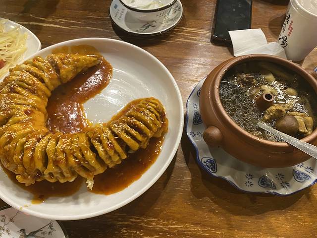 相比二哥家的米线,这里的野山菌砂锅红米线进味儿的多,云南粑粑就是很硬的夹馅饼,烤乳扇像炸排叉儿,绿色的就是水性扬花,味道怪怪的没什么口感,梅子酒地道,其实在这里不用点酒水,这家的免费柠檬薄荷水非常好喝(右下)。