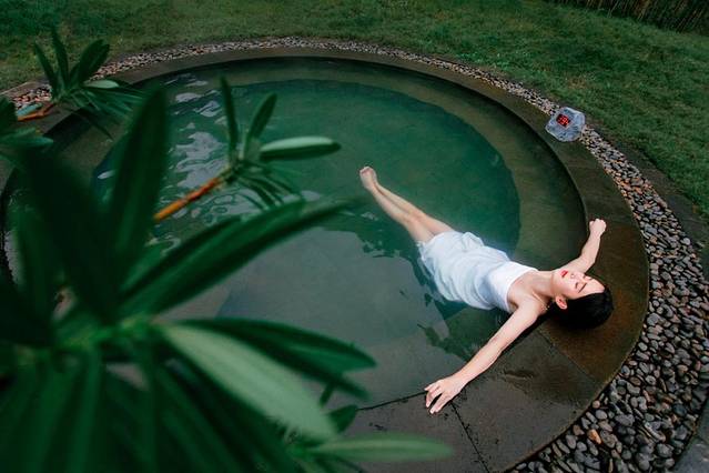 室外空气裹挟了温泉的水汽,在欢乐戏水的同时,能随时欣赏青山环绕的自然美景。