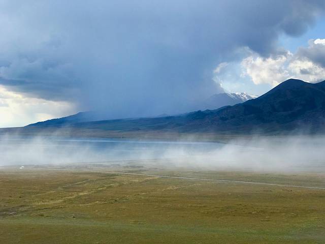 从奎屯到赛里木的路上一路大雾,我们以为这一天要毁掉了,结果翻过一座山就豁然开朗,美翻了~~