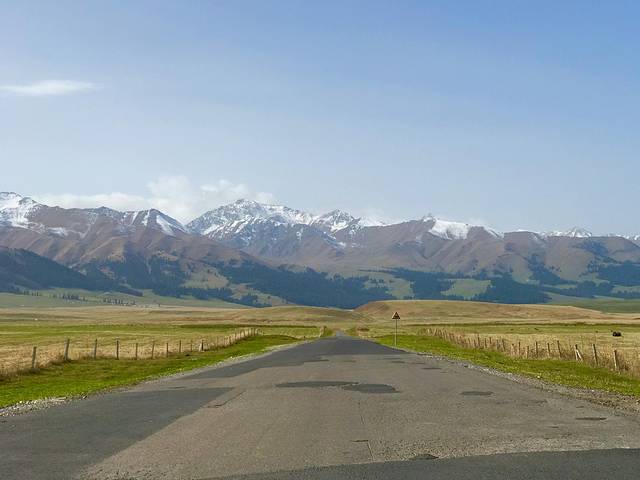 新疆自驾路上的风景也是很壮丽,有种开向天边的感觉