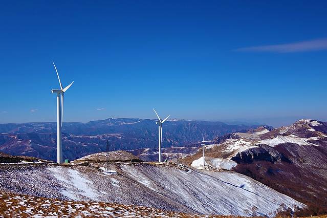 如果说雪后的小天山“圣洁”、“高冷”,那一排排悠然转动的白色风车,就是它“跳脱”、“欢快”的一面。