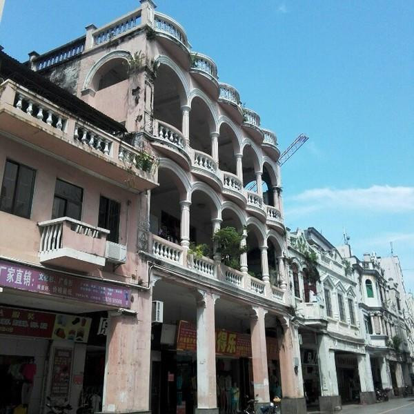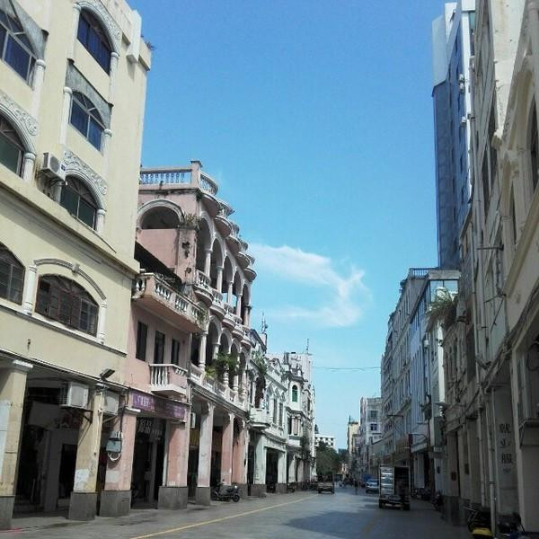 海口 骑楼主要分布于 海口 市得胜沙路、 中山 路、博爱路、新华路、解放路、长堤路等老街区。骑楼老街覆盖面积约二平方公里,总长四点四公里,共有大大小小的三、四层高的骑楼建筑近六百栋。我去的时候正好赶上两条路维修,所以没有看到完整的建筑,但据我从 海南 人口中得知的消息,原来这一条街的建筑都是非常落败的。
