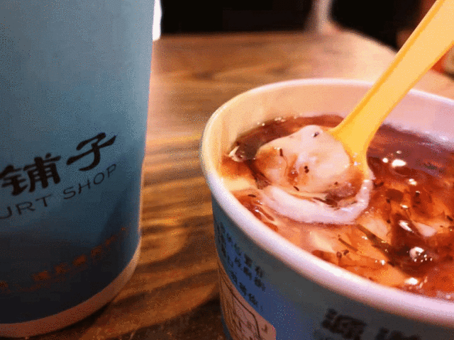 在平遥古城的旅途中我始终是一个人闲逛,要说丽江有艳遇吧,平遥也该有。但是这里也没有传说中的艳遇,我想那种艳遇无非更多的是酒吧的噱头,增加一些情怀吧。而要说平遥真的有艳遇的地方,那么我还是更喜欢这里——酸奶铺子。平遥的这一家店位置很好,远离喧闹的古城中心区域,在衙门街的一头与南大街交汇的拐角处。饮品店在我国的很多城市和古城中都可以看到,专营酸奶的也不少,但是这家总是感觉不一样。