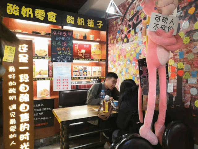 梁先森の酸奶铺子并不同于一般的饮品店,它并没有一般饮品店种类繁多的饮品,店里专营酸奶制品,并且认真调配每一种酸奶的口味,而且古城文创的摆放造型也是各种各样,非常有创意,除了酸奶之类这里还有很多搭配酸奶的小食。很多人来这里就是为了放松自己,打发时间,我想这个时候,最不值钱的就是时间了。