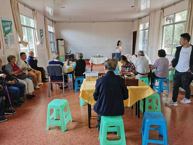 工作人员用心为大家讲解周边环境、娱乐项目和老年人应该注意的事项。