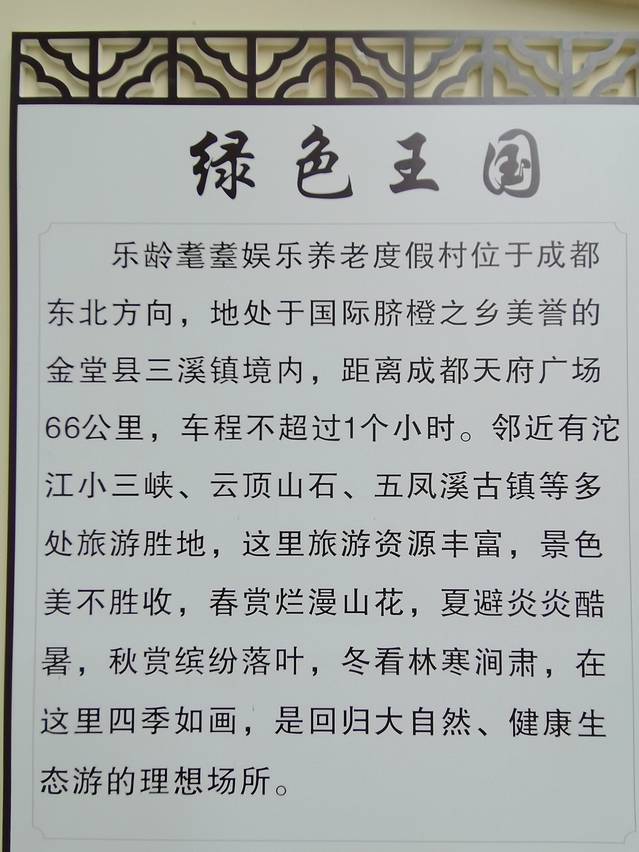 “耄耋”是指年纪很大的人,脐橙之乡是在四川省金堂县,老年朋友来到有着“中国脐橙之乡”名号的金堂县,快乐融融。这里有个度假村,名字就叫“乐龄耄耋”,原来“乐龄”二字也有同“耄耋”相近的含义,度假村就是为老年朋友享受这绿色有机生态农场打造的,我两次来这里。