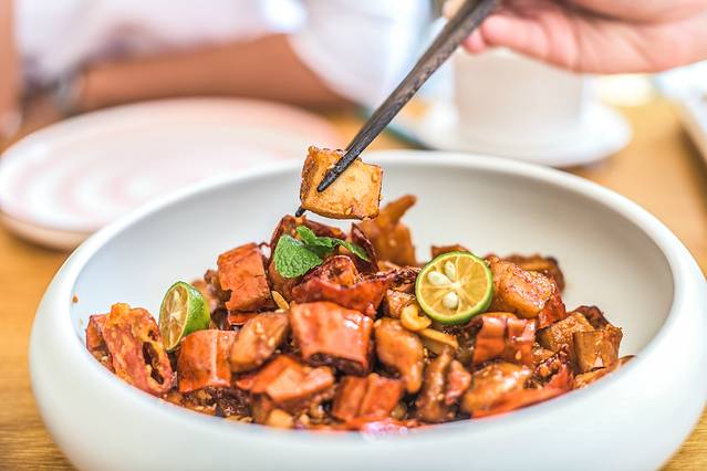 这种改良版的川菜系列的美食,从颜色上看就知道是一个很有讲究的菜品,首先是材料是以菇类、干椒等主要素菜类食材。其次是在厨艺方面讲究的东西很多,通过卖相与口感即可得知这个结论。