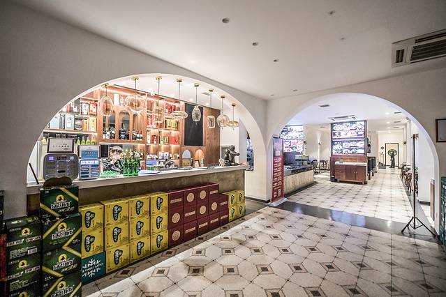 说到餐厅的内部环境还是非常不错的,是不是觉得这种餐厅充满着工业风的气息呢?经过了解才知道这是一家用22个废弃集装箱组建而来的餐厅,22个集装箱能建设三层楼高的餐厅还是很有趣的。可以说这是用集装箱改造而来的工艺品,非常震撼!