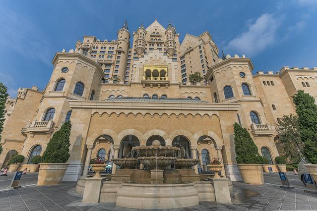 酒店的外观以17世纪欧洲城堡建筑为主,果然是一座欧洲城堡式酒店,就算不知道该酒店的名字,通过外形也能大差不错的猜得出它与欧式城堡酒店有莫大的关系。