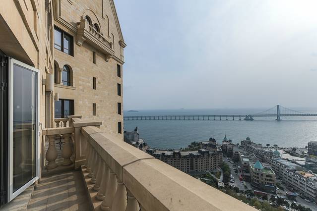 如果有人认为第一张照片不可能是在酒店阳台拍摄到的话,白天的时候在阳台即可证明了。这个角度非常好,视角绝佳,如果想要豪华型度假酒店的话,并需要绝佳的海景视角的话,那么大连一方城堡豪华精选酒店绝对是首选。