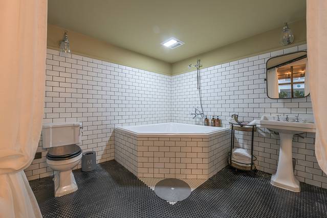 浴室的环境业非常棒,除了干湿分离的设计之外,还配有浴缸。洗脸台有两个盥洗池,为方便夫妻两同时使用,设计的非常科学合理。