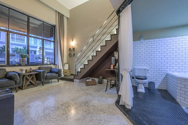 卫生间的设计是融合了民国大连格调与现代地中海风格,给人一种中西结合的建筑的张力以及混搭型的民宿文化。这种民宿不仅是渔人码头一带少见的,恐怕在整个大连也不曾多见的吧?回头有时间慢慢的游玩大连,验证一下这是不是大连最有韵味的民宿。