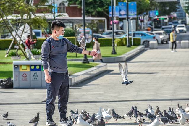 中山广场的鸽子在城市呆久了,看到人也不会陌生了。走在鸽子的身边,都会上你的身上跟你玩耍。这些代表和平、吉祥的鸽子们在中山广场自由自在的闲游,看到游客到来都会很“皮”的跟游客们玩乐,这是大连具有城市特色的一幕,于是山野君就拍下了这张照片,不知道你们喜欢不喜欢。