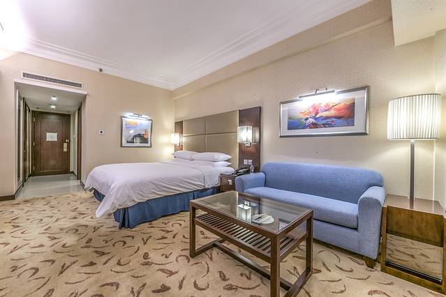 现在就来看看山野君下榻的房间吧,环境与其他同星级酒店差不多。与通品牌酒店的客房相比较,面积略小,这跟当时的建筑结构有关系。房间内部的硬件条件看不出是1997年开业的老酒店,我想最近几年也有重新翻修过的。