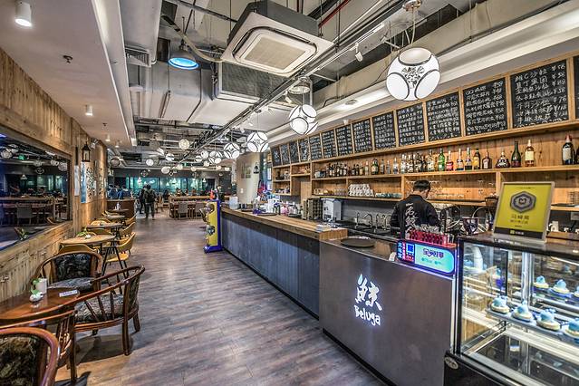 内部装修是以典型的咖啡屋为主题,这种带有轻奢与小清新格调的西餐厅,让人耳目一新。更为重要的是里面的环境非常不错,并且拥有大连唯一的海洋馆内观景西餐厅,这个才是最大的亮点呢。