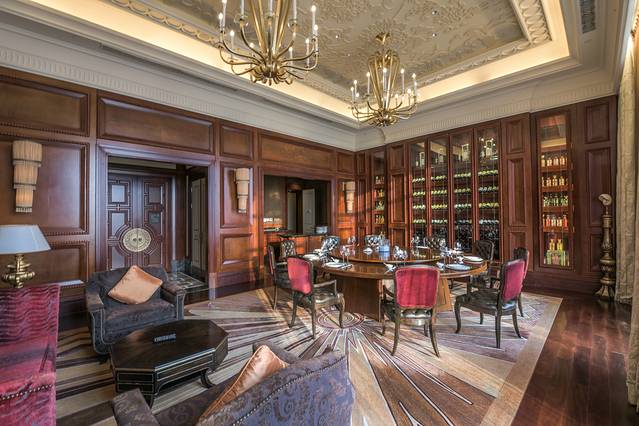酒店餐厅包厢据说是在大连贝壳博物馆上改建而来的,之前存放的书籍等都是按照原来的风水师的布局来的,丝毫不曾改变过原有的风水格局,所以整体环境好且不压抑。你们喜欢这种英国宫廷式的餐厅吗?
