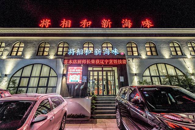 大连的经度比杭州更偏东一些,天黑的似乎更早一些。刚准备用晚餐的时候发现外面已经黑透了,走在街道上看到一个很醒目的海鲜馆,看起来很一般化,并无特色。可是山野君被中国一绝这四个字所吸引了,到底有何种神秘食材竟敢以“中国一绝”来自称,于是我跟朋友们商议晚餐就在这里进行,来见识一下这家中国一绝的海鲜馆吧!
