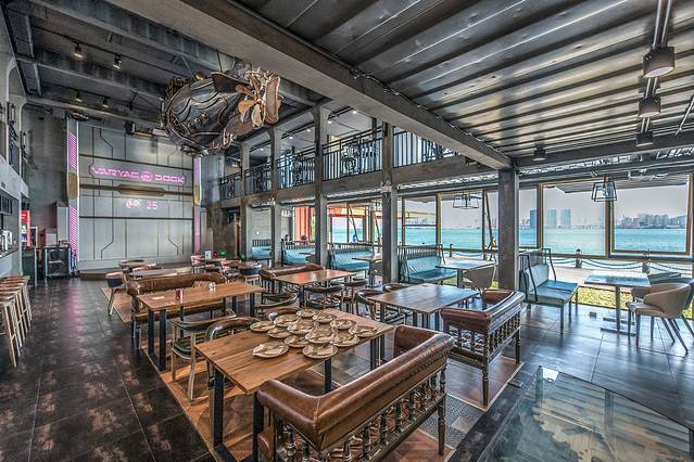 为以后再次打卡这家餐厅,同时有不用担心记不住名字,所以山野君拍摄餐厅的名字与内部环境,希望对大家有一定的参考作用。这家大连最火爆的瓦良格餐厅选取绝佳的海湾位置,利用废弃的海运集装箱改建而来,非常有创意。