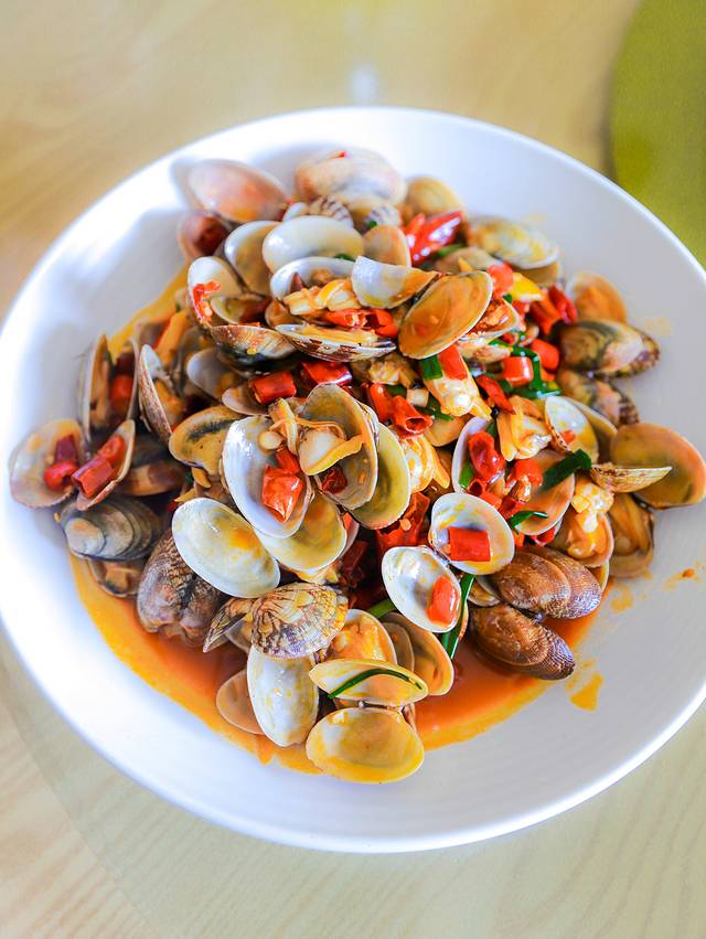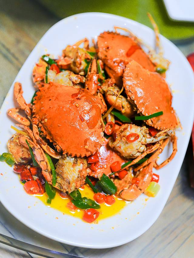 香辣蟹:爆炒的蟹,味道果然很棒,蟹黄和蟹肉都很多,吃起来鲜嫩多汁,微微辣的口感,美味,招牌必点。