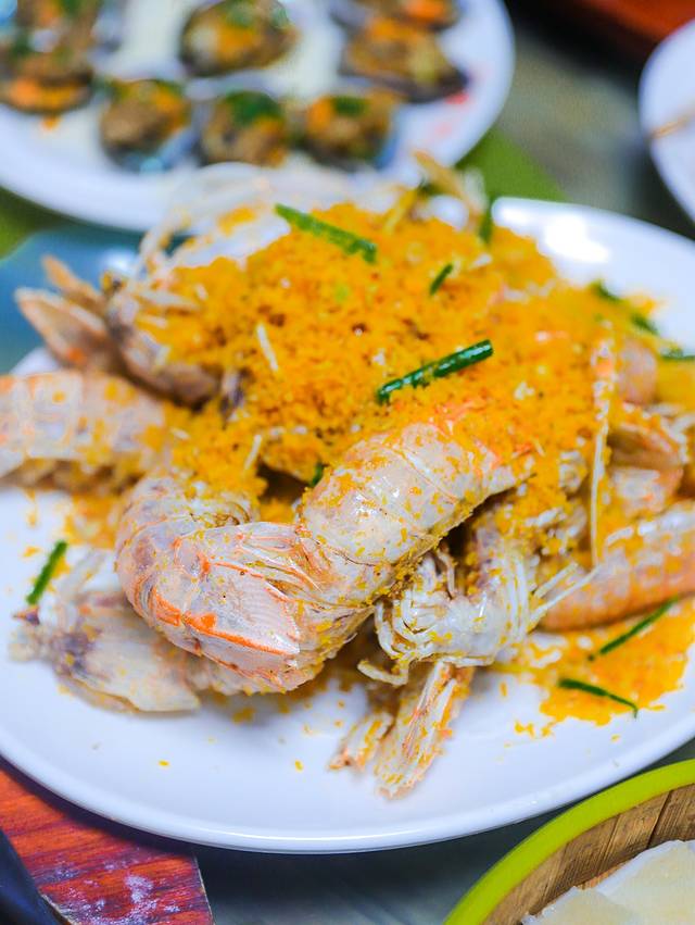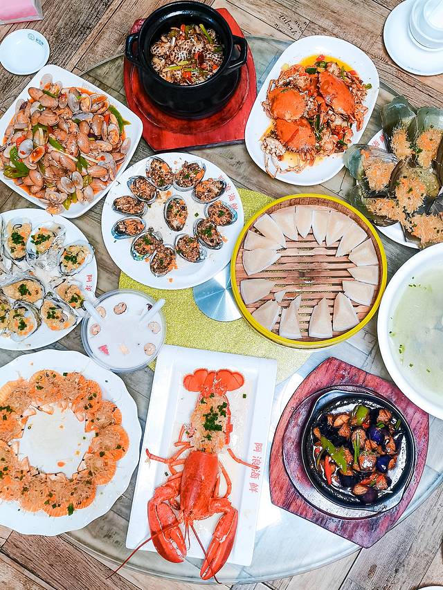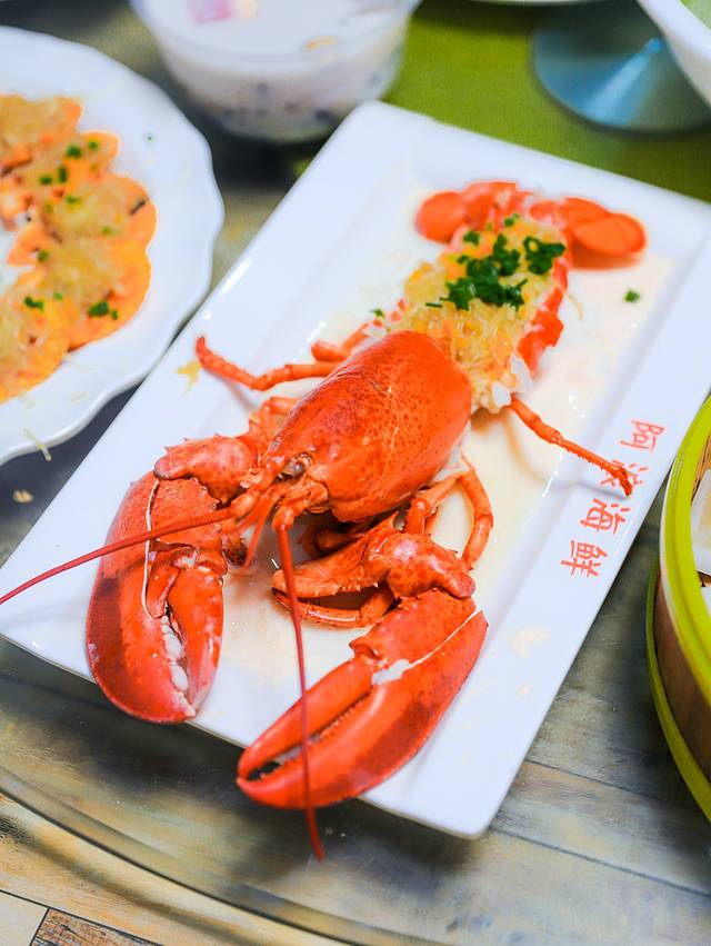 蒜蓉开边蒸大龙虾:又大又肥,肉多又嫩,口感鲜美,搭配着上面的蒜蓉粉丝吃,不要太好吃。