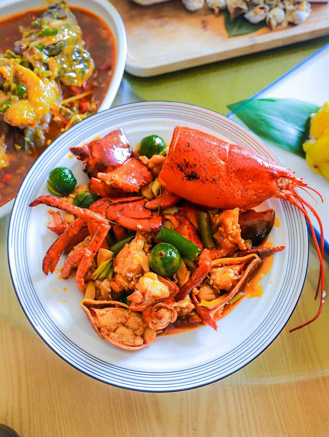 仙罗大龙虾:和蒜蓉蒸龙虾不同,应该是蒸了之后再炒的做法,龙虾肉饱满又细嫩,微微辣。