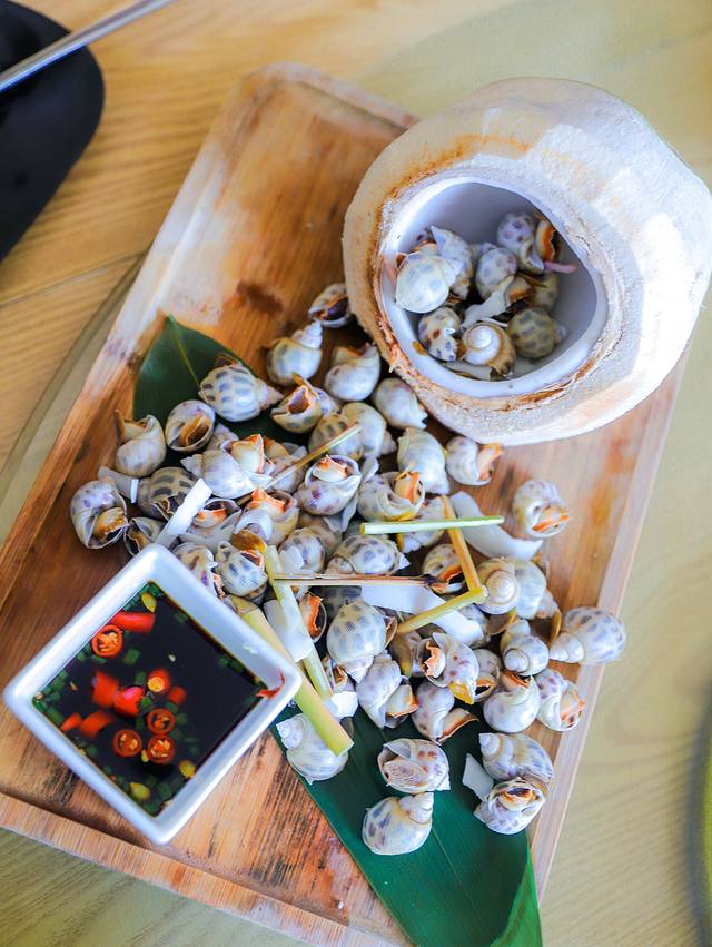 椰香花螺:必点菜品,摆盘很别致,螺肉紧实饱满,有嚼劲,带有淡淡的椰香。