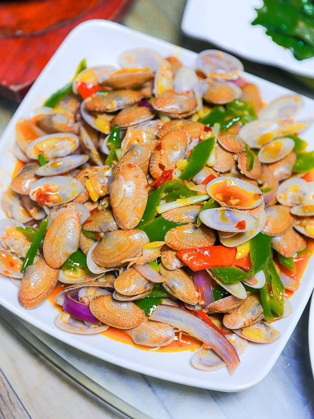 爆炒芒果螺:螺肉鲜嫩,辣味十足,吃一口就被称赞的美味,必点。