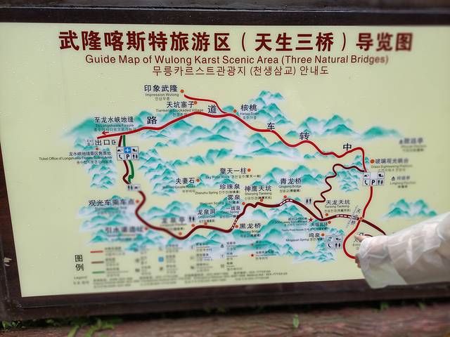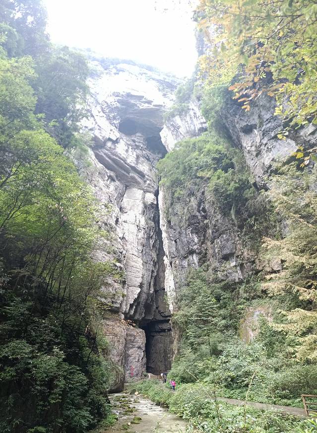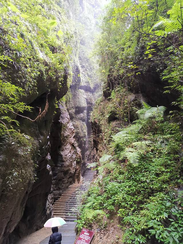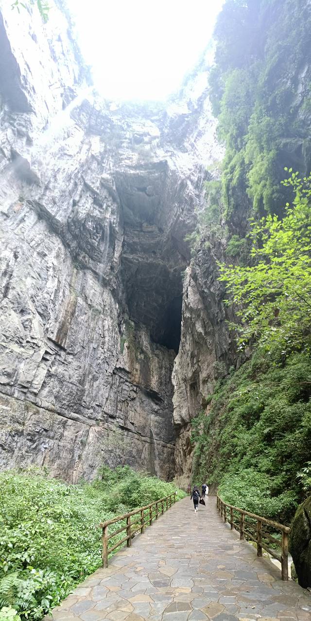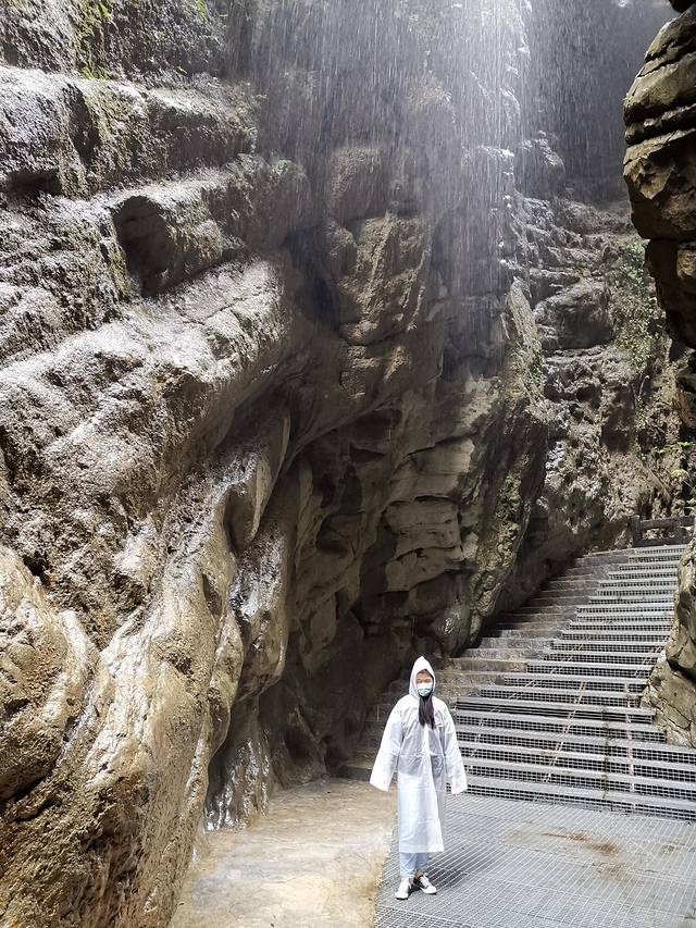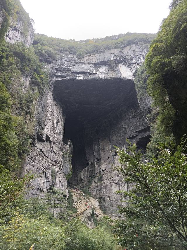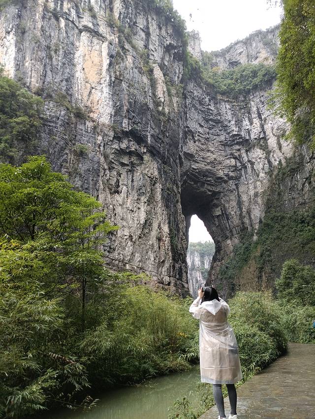 早上八点出发,坐了三个多小时的车,吃完午饭开始游玩已经是中午十二点了,因为武隆实在是太大了,一天之内只能选择几个地方游玩,我们选择了天坑跟地缝,仙女山跟乌江我们都没有去。首先我们去的是天坑,满城尽带黄金甲跟变形金刚都有在这里取景,进去的时候你可以选择坐电梯或者步行,因为怕电梯那边人多,我们选择步行,也就半个小时,还是比较轻松的。不论出发前下不下雨,一定要记得带上雨具,雨衣比雨伞方便点,有条件的可以带上雨鞋套。天坑是不走回头路的,出口跟入口是不同的地方
